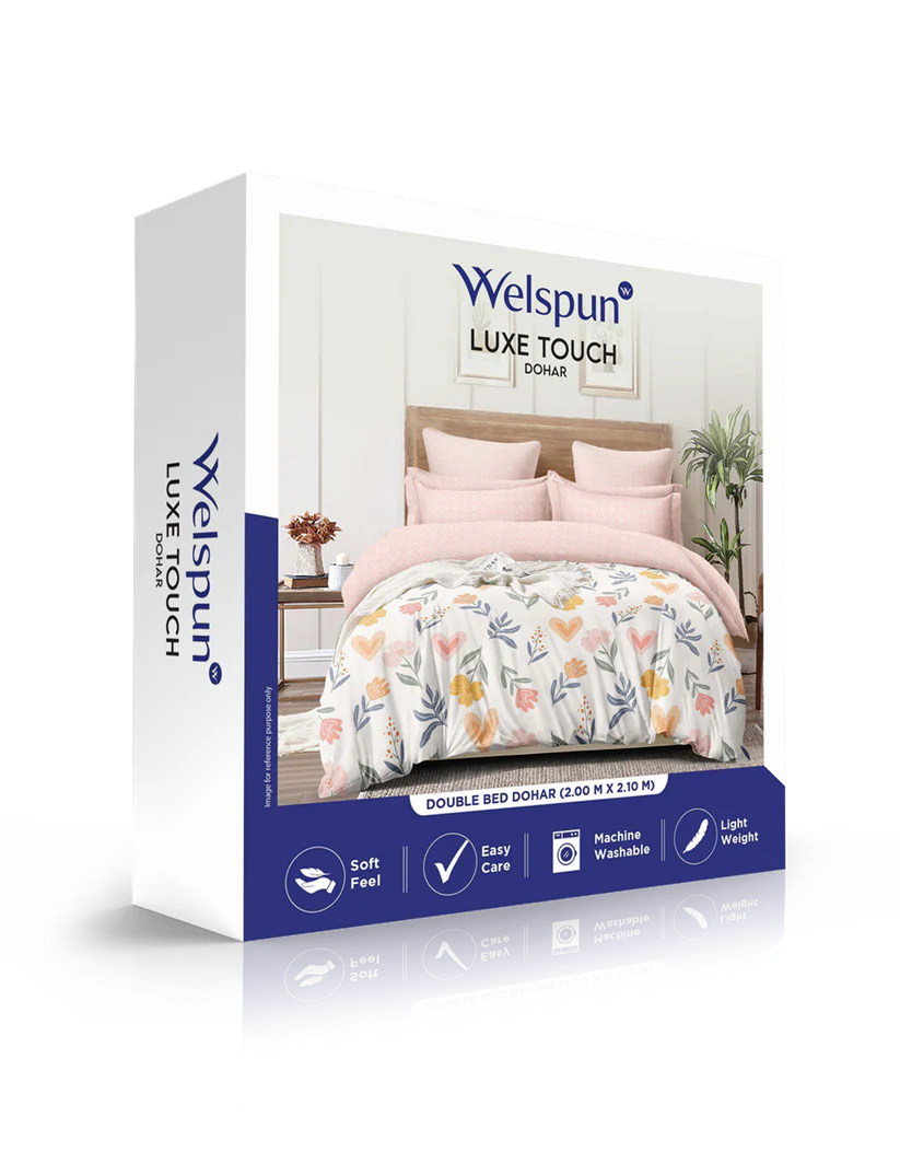 Upgrade your bedding with the Welspun Luxe Touch Double Bed Dohar, designed to deliver a perfect balance of comfort, elegance, and practicality. Ideal for modern homes, this dohar is crafted to provide a soft, breathable feel with just the right amount of warmth—making it suitable for year-round use.